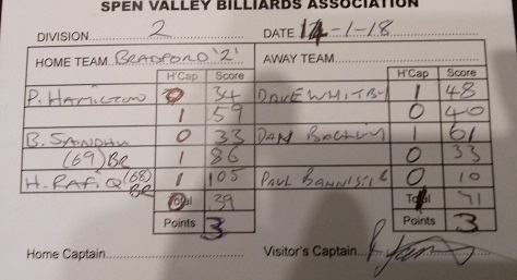 January 13, 2018 19:30 Yorkshire Snooker League – Division two (2017/18) 2017/18