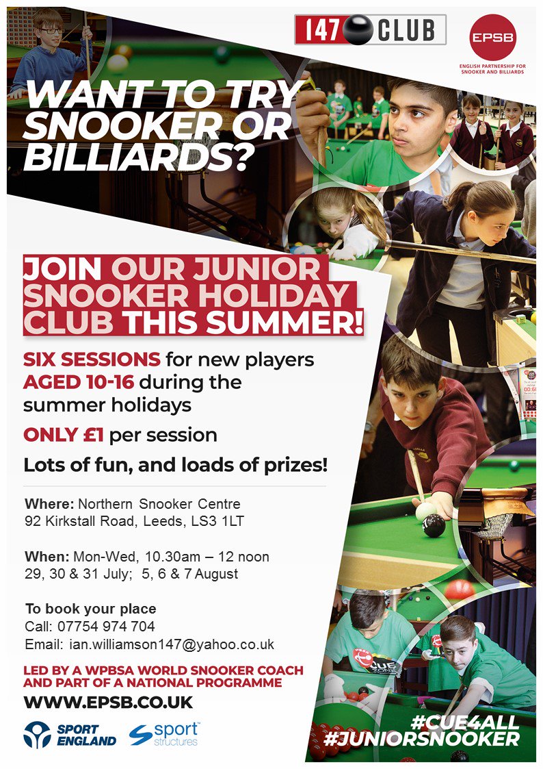 Calling all 10-16 year olds in Sheffield, Leeds and all local areas who want to try snooker this summer holiday!